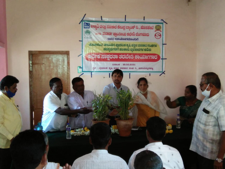 ಬಳ್ಳಾರಿ ಜಿಲ್ಲಾ ಸಹಕಾರ ಕೇಂದ್ರ ಬ್ಯಾಂಕ್ ನಿ., ಹೊಸಪೇಟೆ ಹಾಗೂ ನಬಾರ್ಡ್ ಪ್ರಾಂತೀಯ ಕಛೇರಿ ಬೆಂಗಳೂರು ಇವರ ಸಹಯೋಗದೊಂದಿಗೆ ಆರ್ಥಿಕ ಸಾಕ್ಷರತಾ ತರಬೇತಿ ಕಾರ್ಯಗಾರ